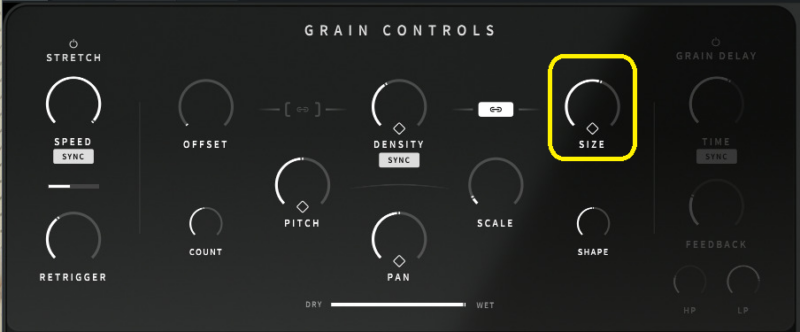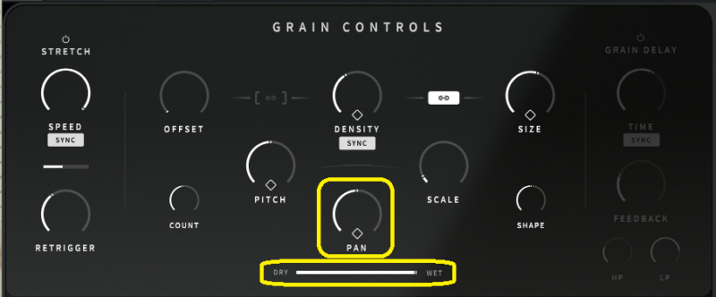 DRY/WETも省略。エフェクトをかける量。最初の画面のDRY/WETと違い、GRAIN CONTROLSだけのDRY/WET。