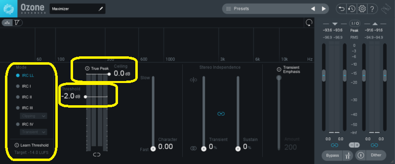 Learn Thresholdが最初は-14.0LUFSになっているのは、youtubeなどが、だいたいそれぐらいだからでしょうね。