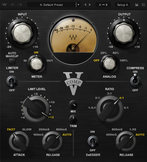 スレッショルド(圧縮を開始する基準の音量)とアタック(スレッショルドを上回ってから圧縮を始める時間)は?と思うんですが、どちらも固定らしいです。