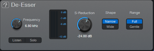 歯擦音を和らげるためのプラグインなので、周波数の設定は高めですね。