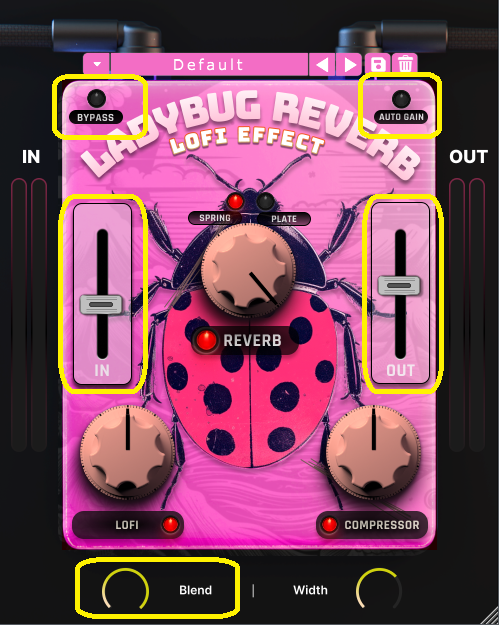 BYPASS・Blend・IN・OUT・AUTO GAIN