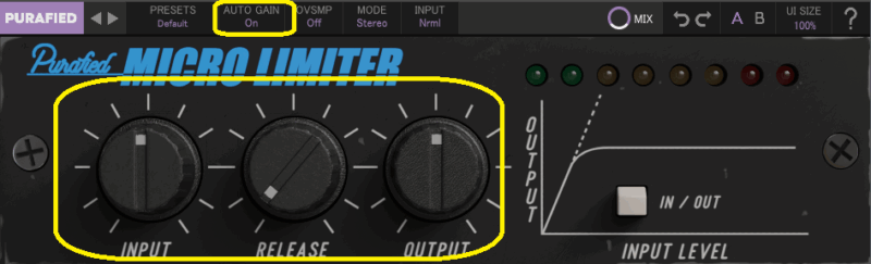 INPUT・OUTPUT・AUTO GAIN・RELEASE
