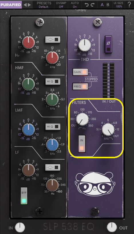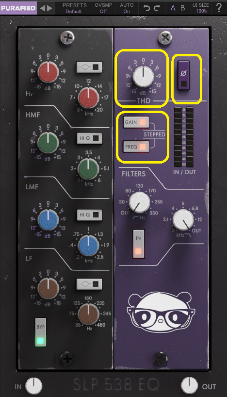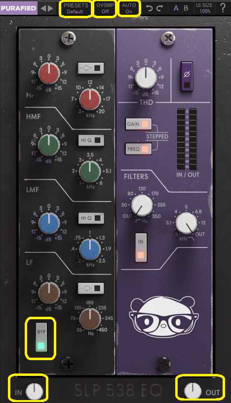 PRESETS・IN・OUT・OVSMP・AUTO・BYP