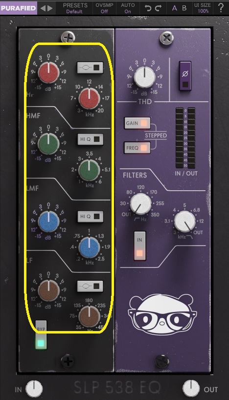 STEPPEDは、オンにすると、EQ側のつまみがステップごとになります。
