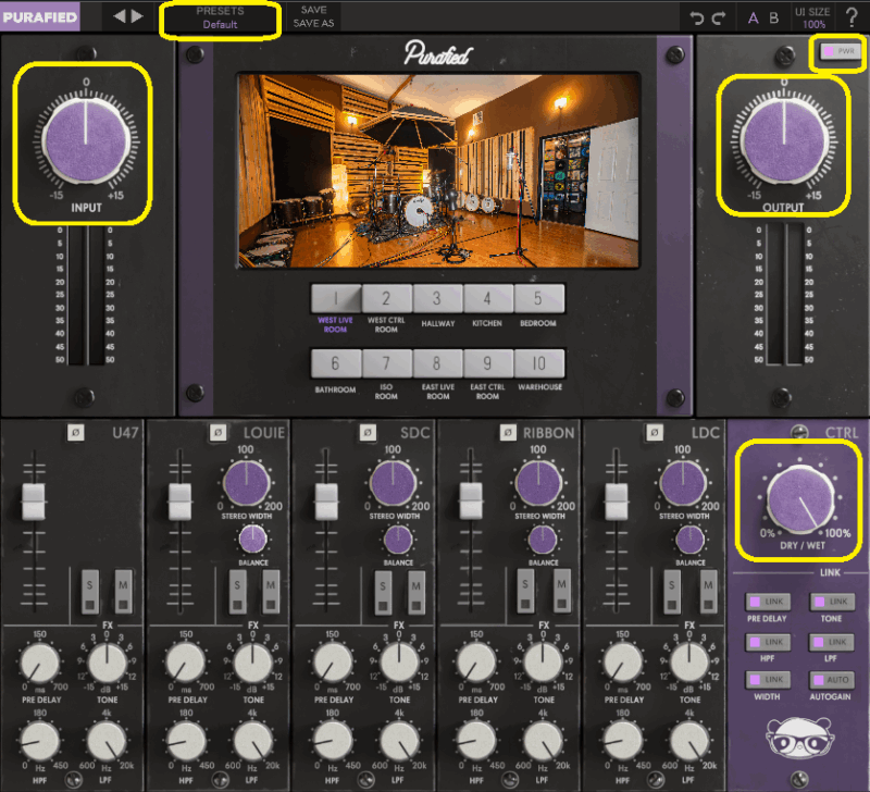 PWR・PRESETS・INPUT・OUTPUT・DRY/WET