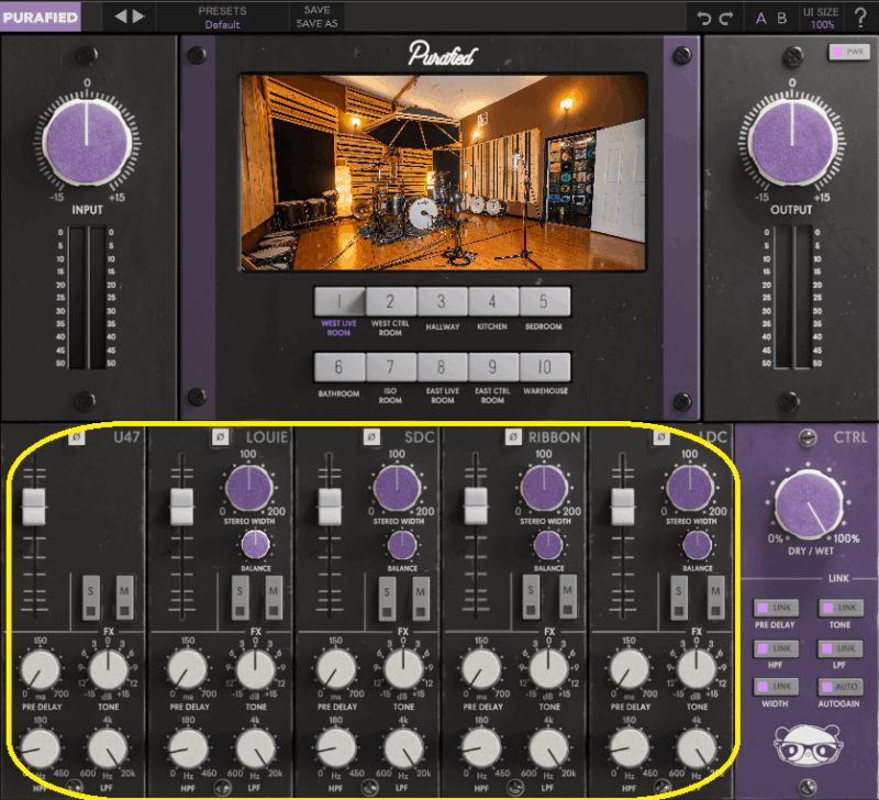 このセットアップではLDCマイクが倉庫内に設置されており、優れた減衰とサウンドの選択肢を提供してくれる。9.EAST CTRL ROOM