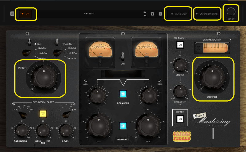 On・INPUT・OUTPUT・Auto Gain・Blend・Oversampling