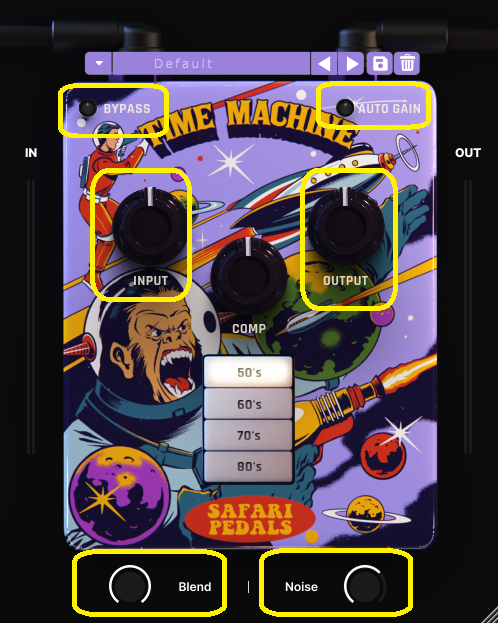 BYPASS・INPUT・OUTPUT・AUTO GAIN・OVERSAMPLING・Blend