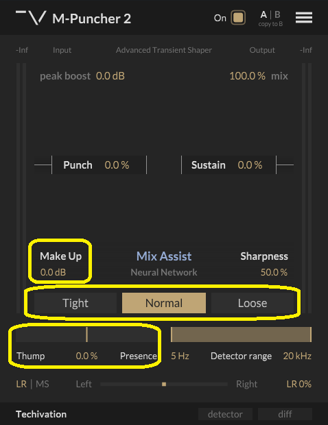 Thump-Presenceはアタック部分にかけるEQ的なもののようです。