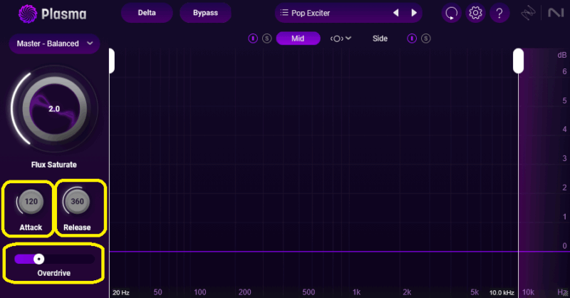 Stereo、Mid/Side、Transient/Sustainごとに別にサチュレーションをかけることができます。