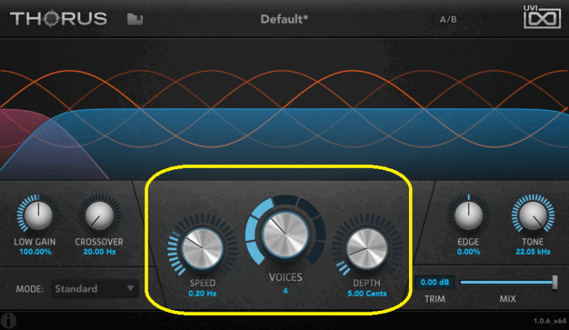SPEEDはモジュレーションの速度、DEPTHはモジュレーションの深さ。