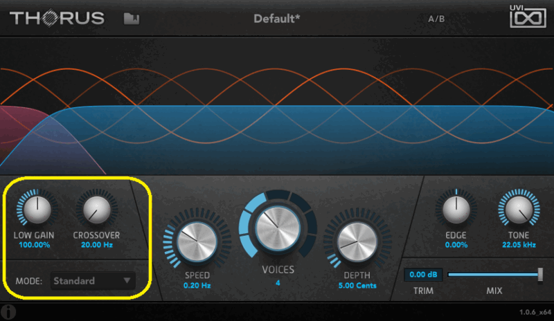 LOW GAINはエフェクトがかかっていない低音の音量。