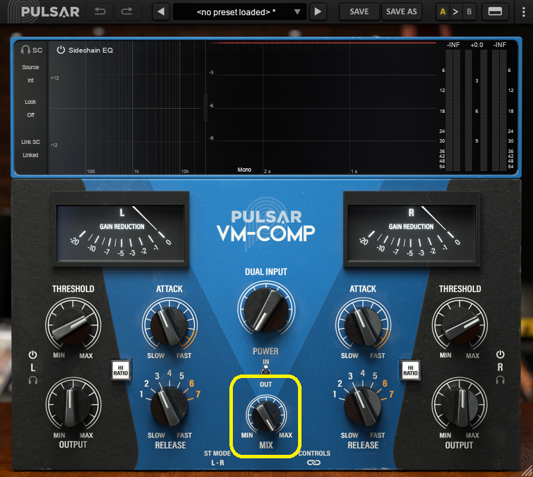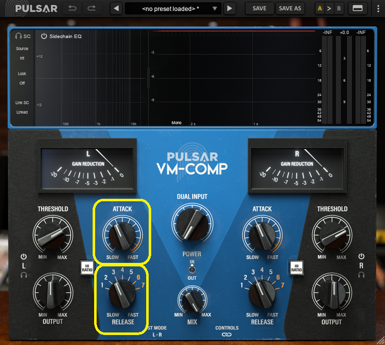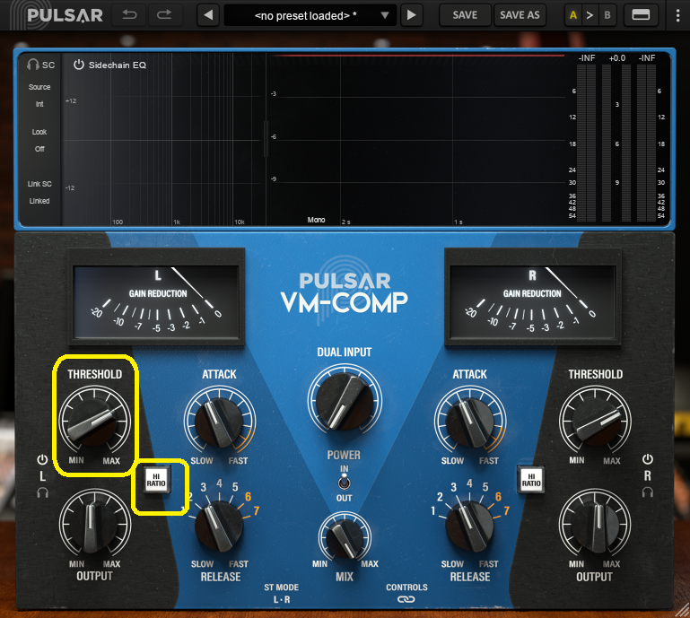 ということで、このVM-COMPに関しては、THRESHOLDが高めでINPUT高め、THRESHOLDが低めでINPUT低めは、圧縮量が変わらないけれども、音には違いが出てくるということになります。