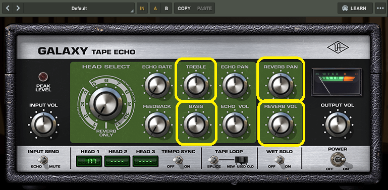 TREBLE・BASS・REVERB PAN・REVERB VOL