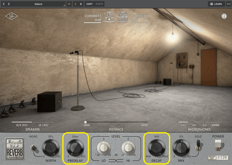 PREDELAYは原音とリバーブ音のタイミングのずれの設定。