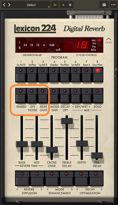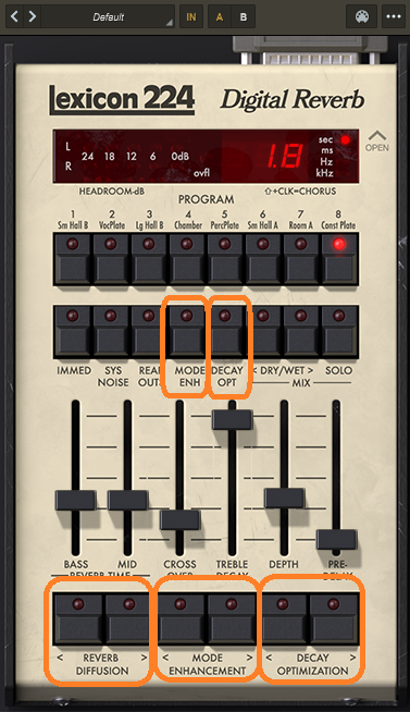 MODE ENHANCEMENTは、「リバーブのテールでルームモードが鳴り響くのを防ぐことで、Lexicon 224プログラムのサウンドをより自然なものにします。」とあるけど、これもよくわからない。