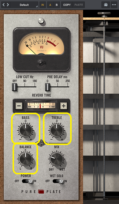 BASSはリバーブ音の低音、TREBLEは高音の調整ですね。