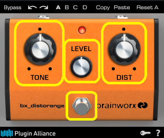 TONEはEQ的なもので、左に回すと低音が、右に回すと高音が強調されます。