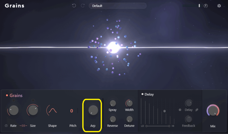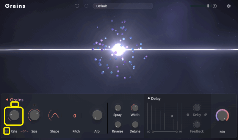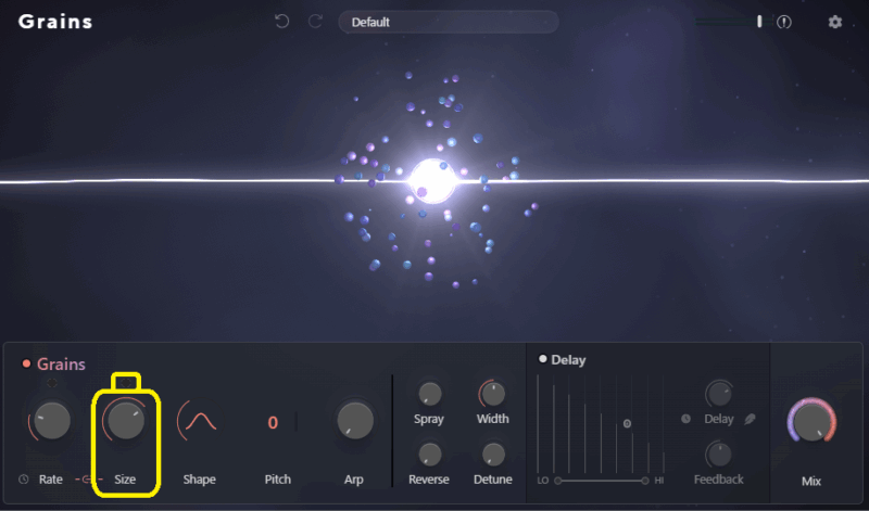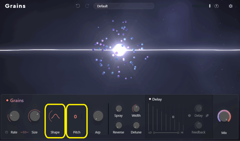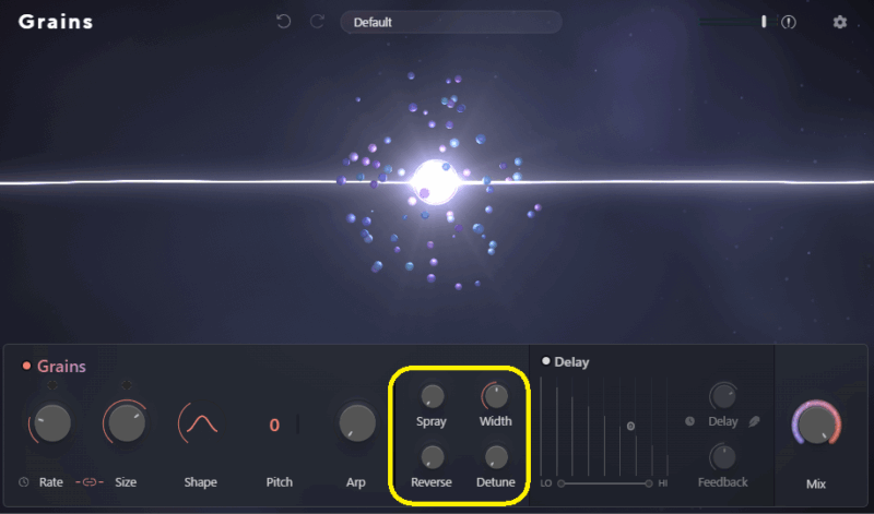 Spray・Width・Reverse・Detune