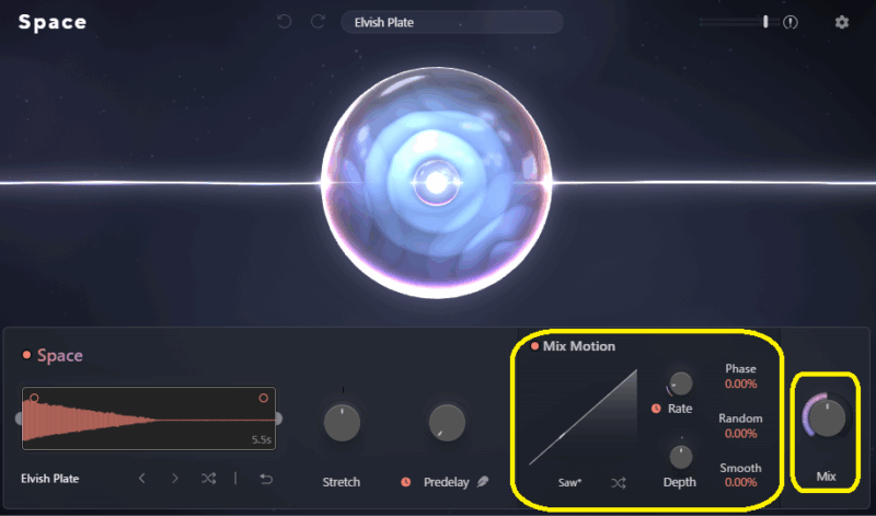 Mix MotionのRateはLFOの速さ、Depthは深さ。