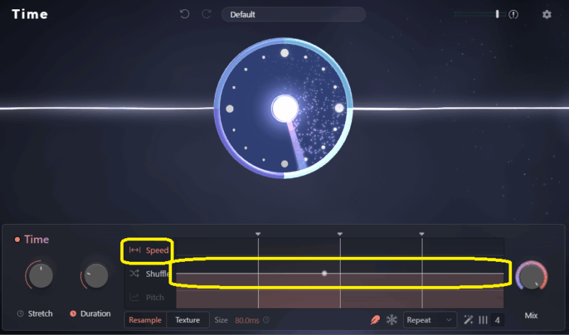 Speedを選択している場合、横線を上下に動かすことで、速度を変えることができます。
