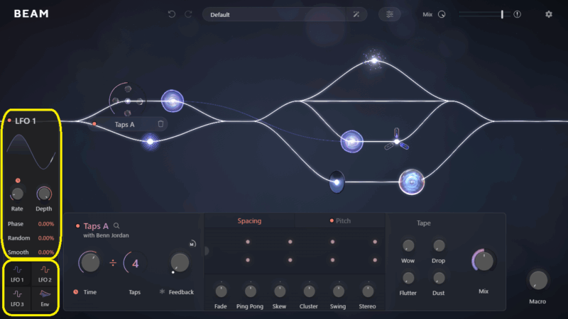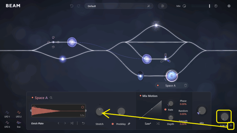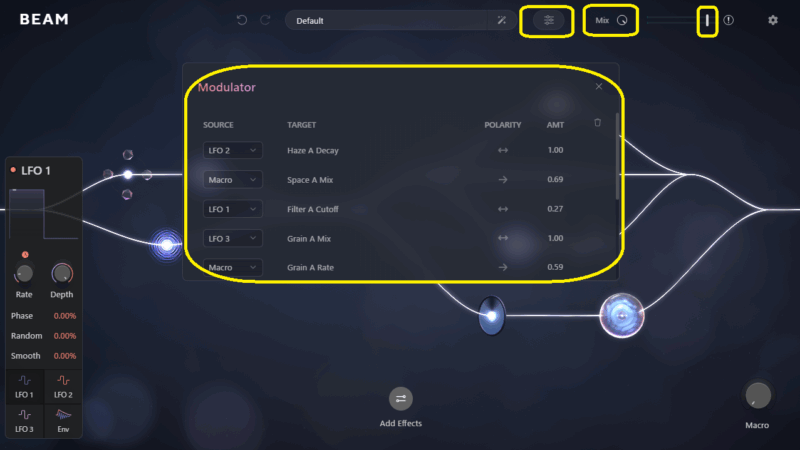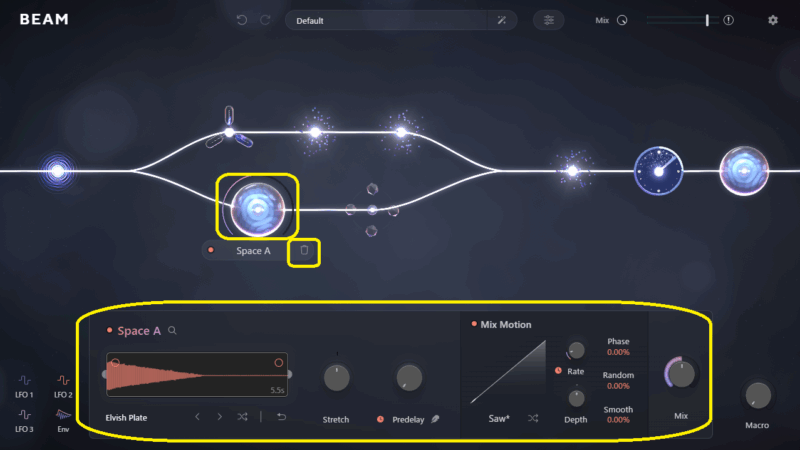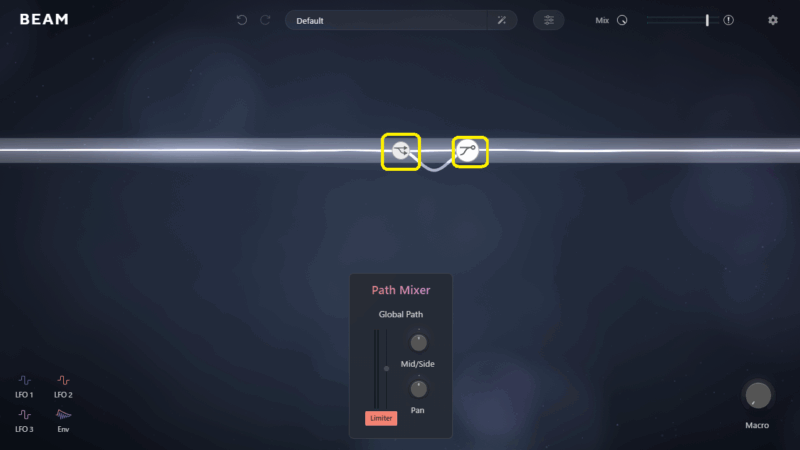 で、スタンドアロンで使った場合と違って、複数のエフェクト(Node)を割り当てられるのと、音を分岐させることができるというのが、このBEAMの本質かと。
