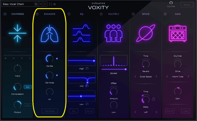 Pre Compをオンにすると、ENHANCEがコンプの前になります。
