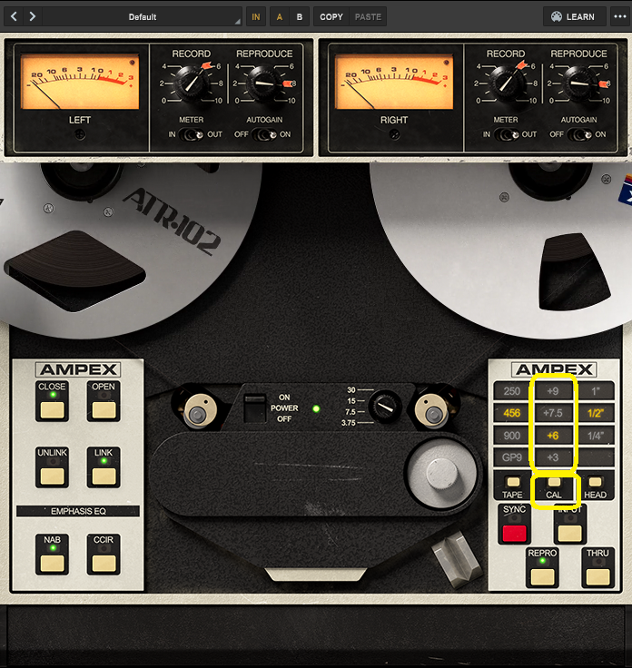 AUTO CALはオンにすると、キャリブレーションEQとバイアスコントロールが、TAPE、テープ速度、EMPHASIS EQ、およびHEADにちょうどよいように自動的に調整されます。