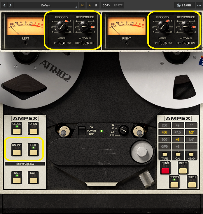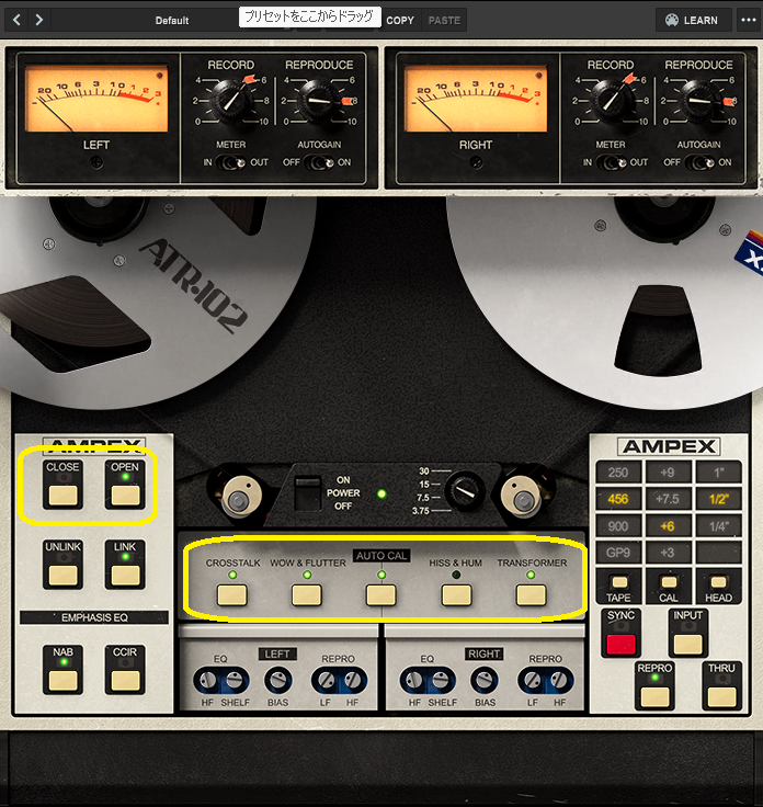 AUTOGAINはオンにすると、RECORDとREPRODUCEが連動して動くようになり、最終音量が変わらないようにしてくれています。