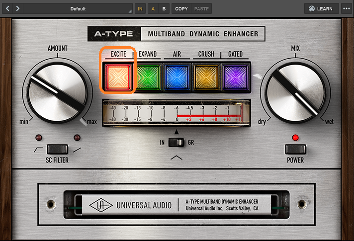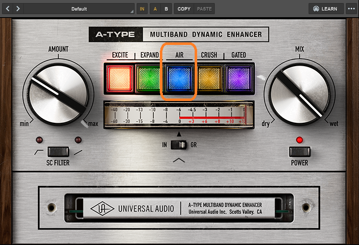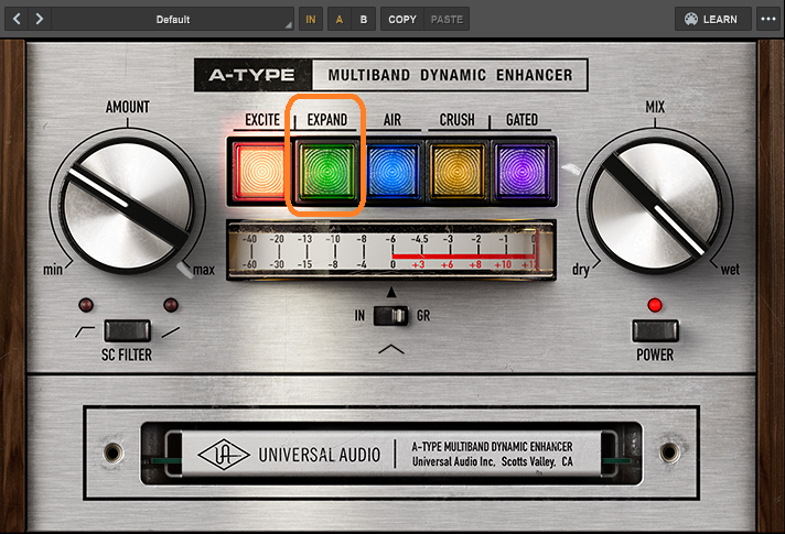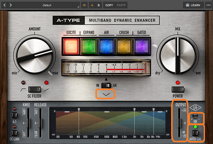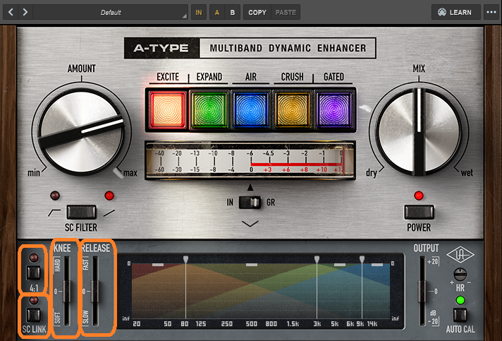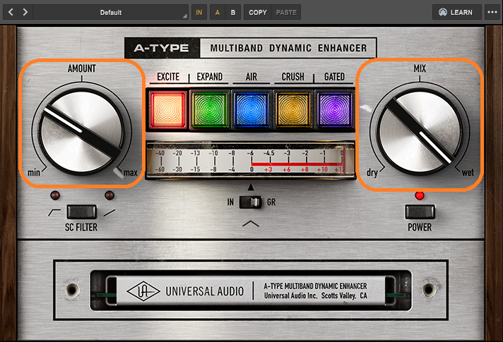 AMOUNTが低いときはコンプっぽい感じで、上げていくと小さい音も持ち上げるようになって、maxまでいくと大きい音を、えげつない押さえつけ方にまでなります。