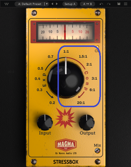 で、コンプっていうと、スレッショルドを超えた音を抑えるものなんですが、このプラグインはスレッショルドなし。