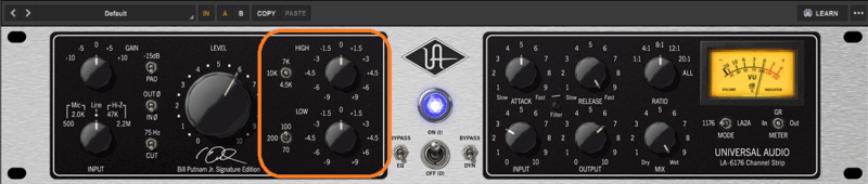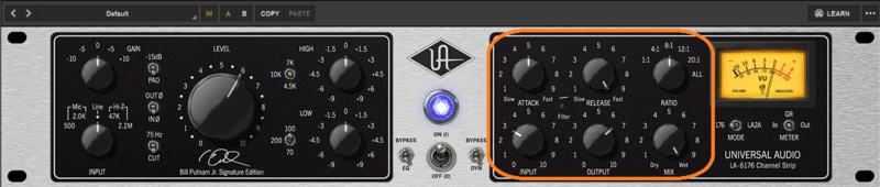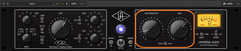 1176はスレッショルドがないタイプなので、INPUTを上げて圧縮の基準にします。