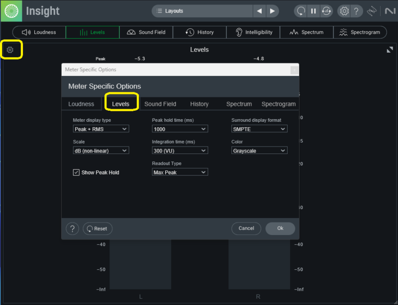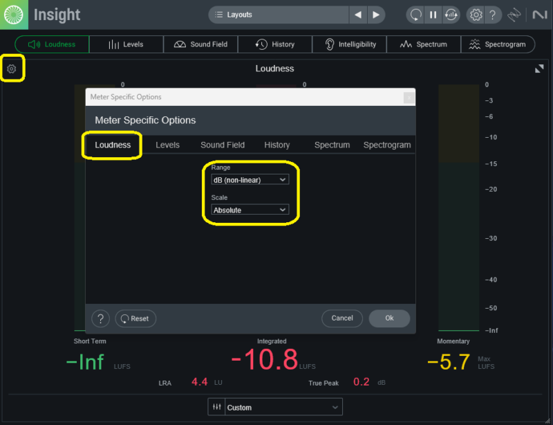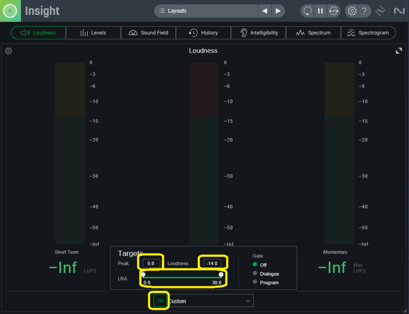 Peak、Loudness、LRAがありますが、ここで設定すると、それを超えると、色がついて教えてくれます。