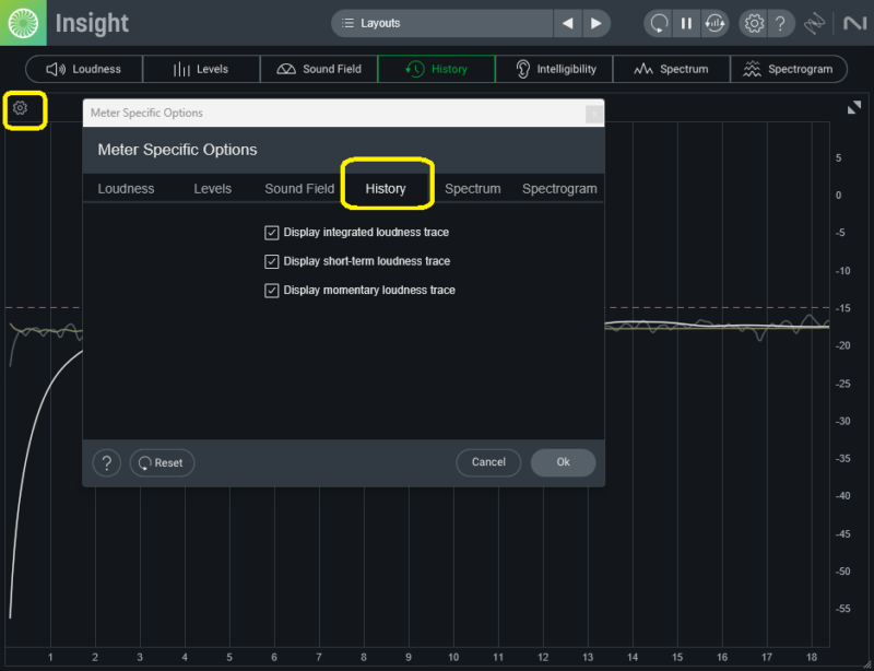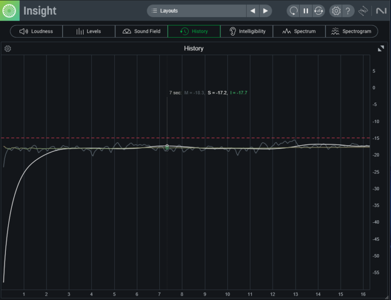 Historyは、ラウドネスの時間経過による変化を見るメーター。