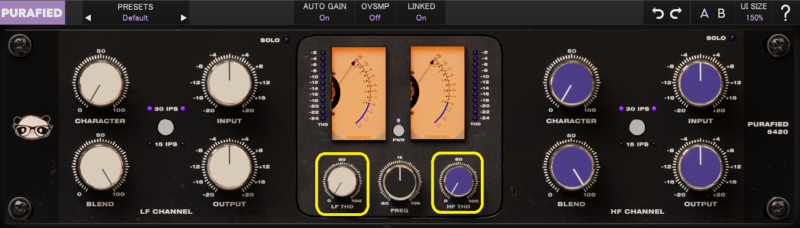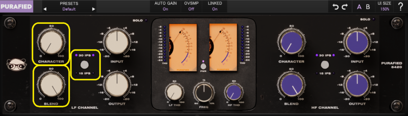 CHARACTERを上げると、倍音の付加が強くなり、EQカーブも変わる感じ。