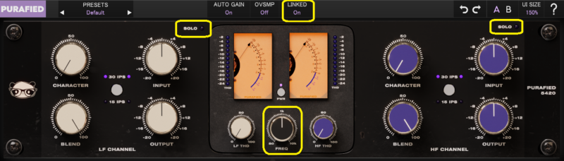 また、SOLOボタンをオンにすると、低音のみ、高音のみを聞くことができます。