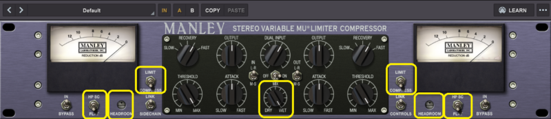 COMPRESS/LIMIT・HP SC/FLAT・HEADROOM・MIX