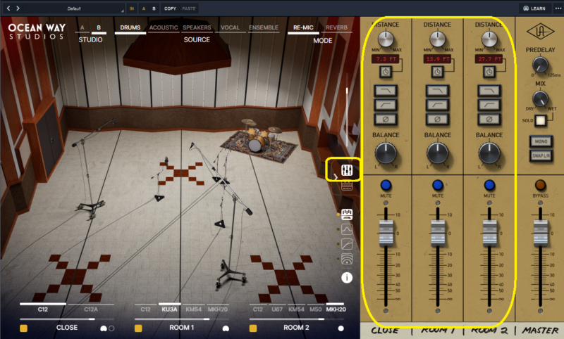 で、右上のDISTANCEで、マイクの距離を設定できます。
