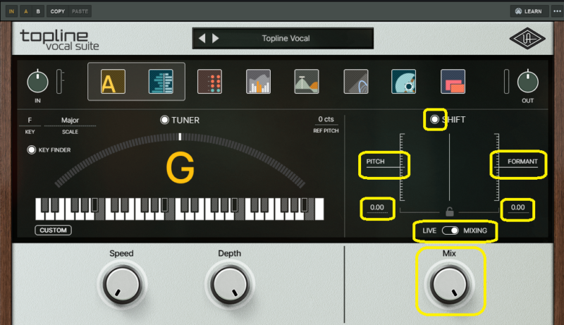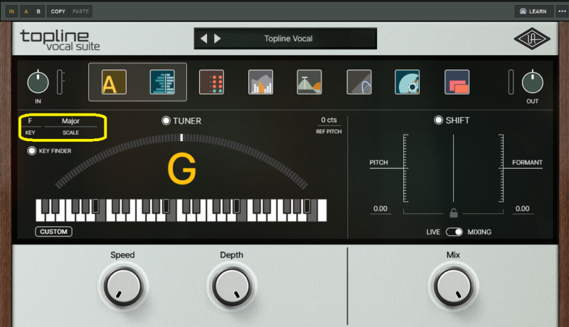 左上のKEYとSCALEを選択すると、ボーカルの外れた音を自動的に合わせてくれます。