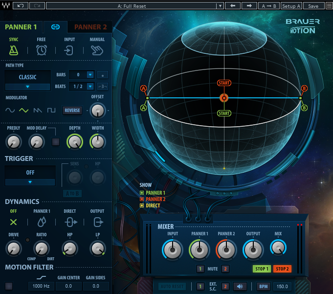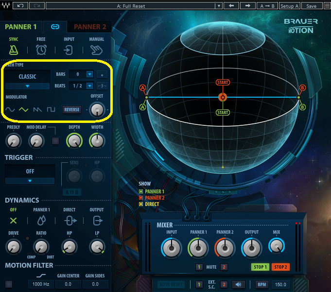 CLASSICは音が直線的に左右に動きます。