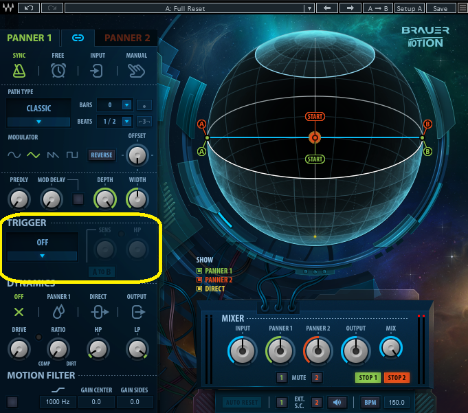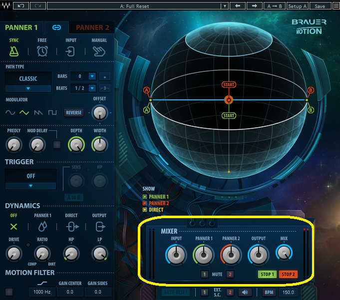 これまで、理解しやすいように、PANNER2をMUTEにしていましたが、実際には、PANNERは2つあるので、同時に2つの音源が動くことになります。
