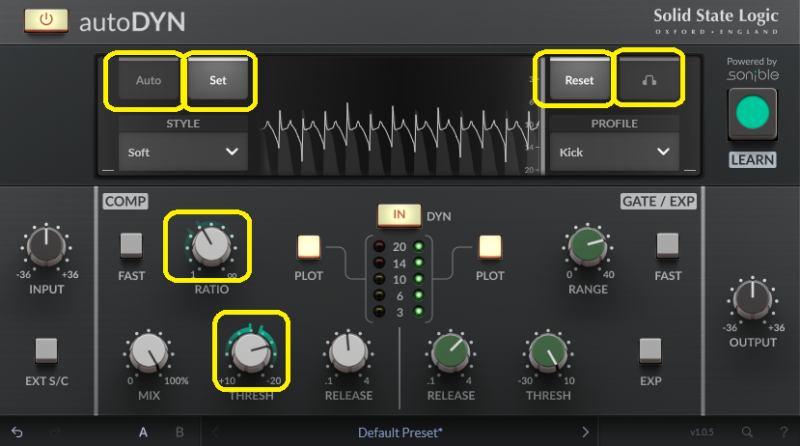 Setをクリックすると、推奨されるところに、つまみがセットされます。