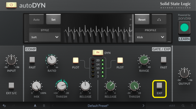 EXPをオンにすると、ゲートがエキスパンダーに変わります。