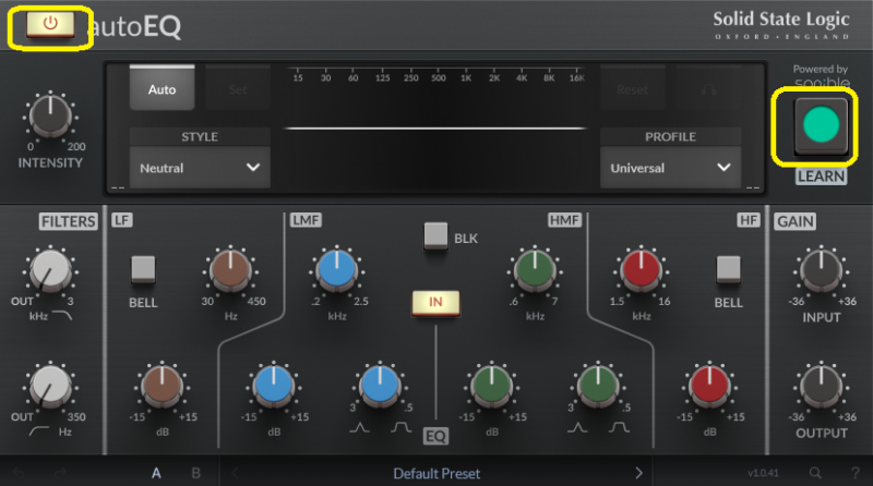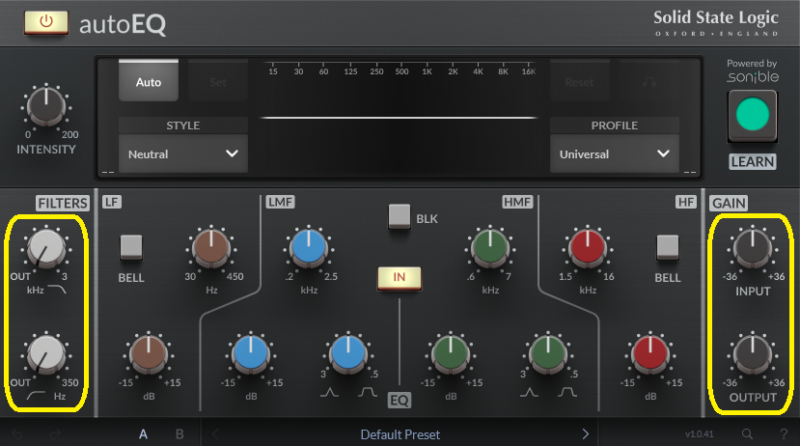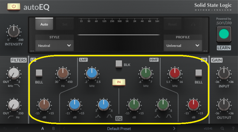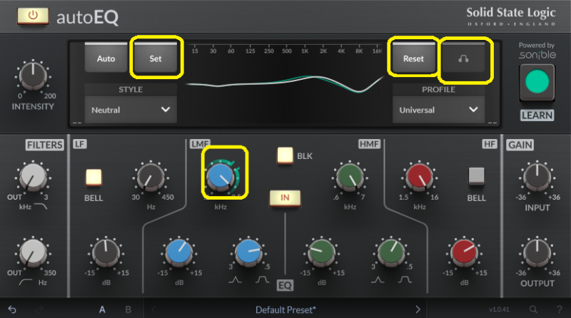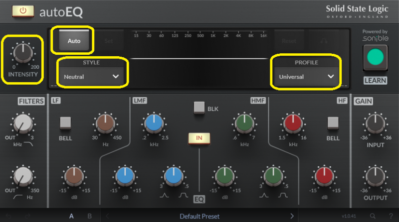 INTENSITYは、AI推奨のEQカーブをより強めたり、弱めたりします。