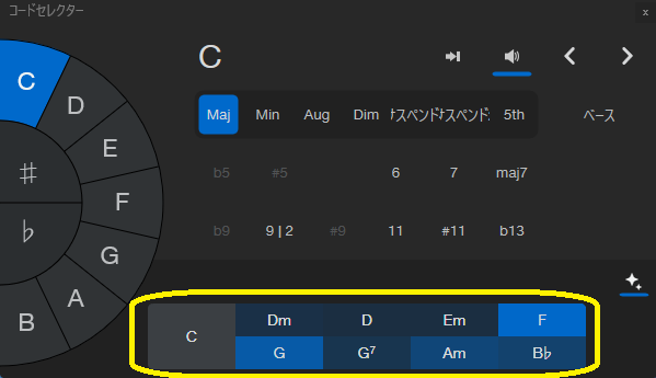 そう、Cの次は、このコードはいかか?と提案してくれる。