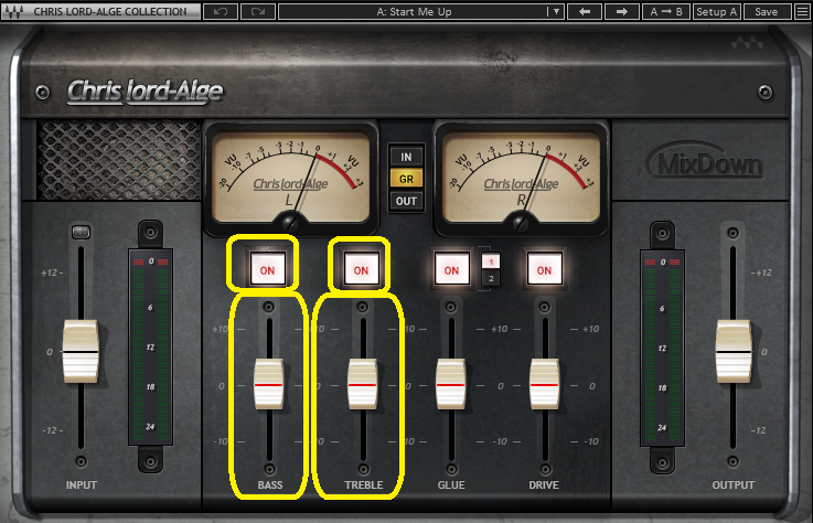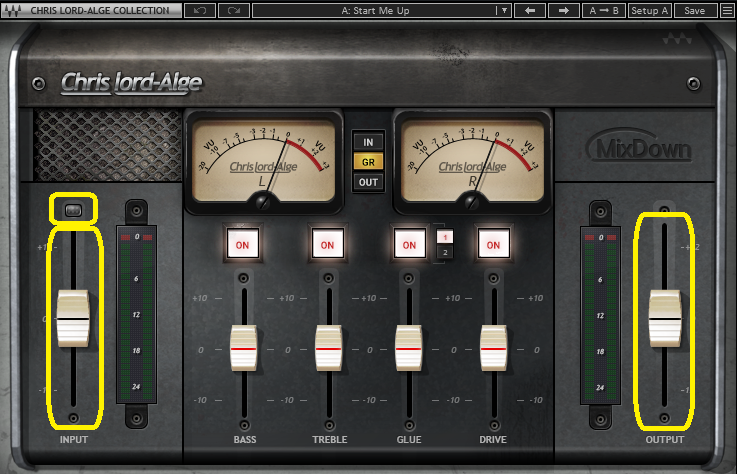 INPUTはインプットゲイン、OUTPUTはアウトプットゲイン。