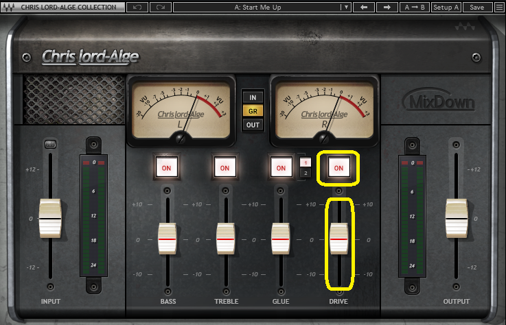 INPUTを上げて、DRIVEをいっぱいまで上げると、さすがに歪んできますかね。