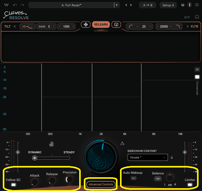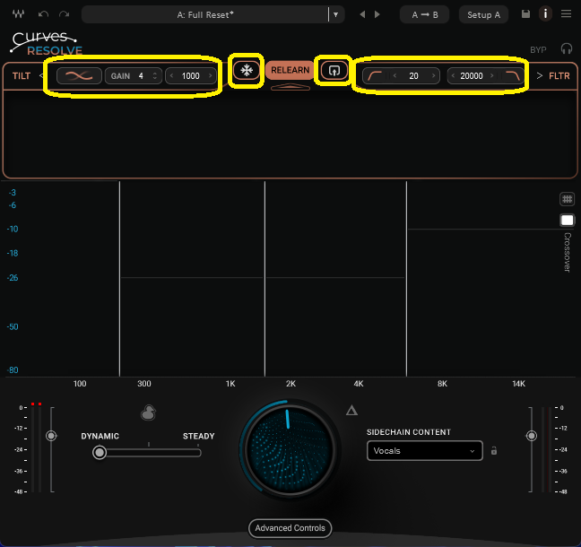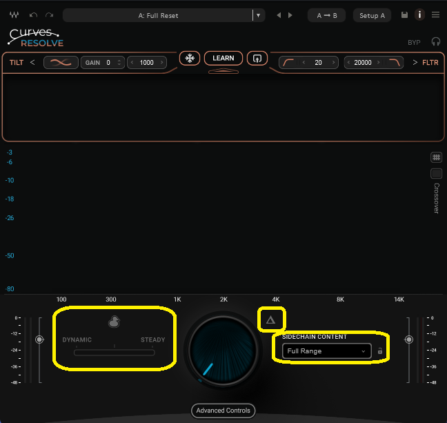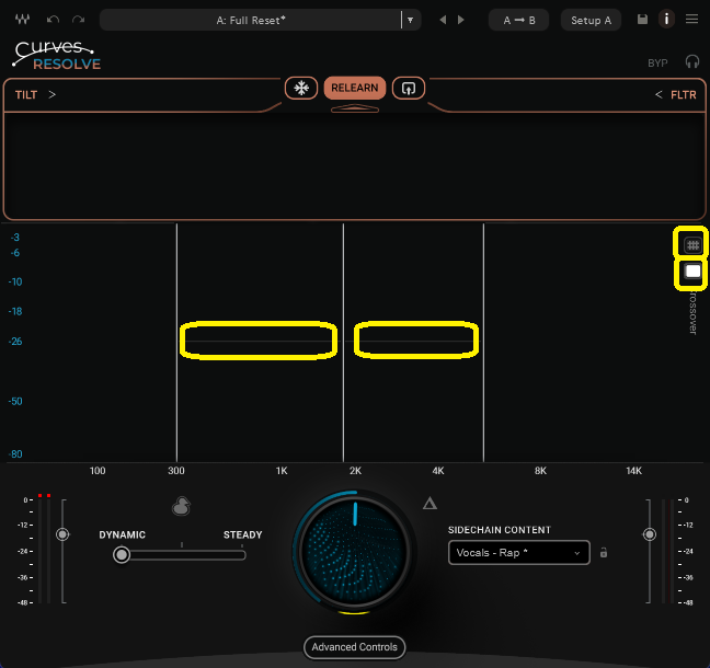 SIDECHAIN CONTENTの設定によって、バンドも自動で設定されますが、バンド自体も動かすことはできます。