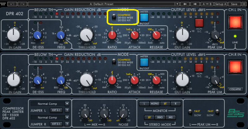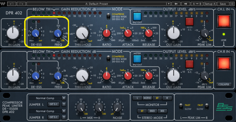 DE-ESS WIDEやDE-ESS H.F.にすると、DE-ESSのつまみは使えなくなります。