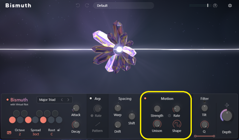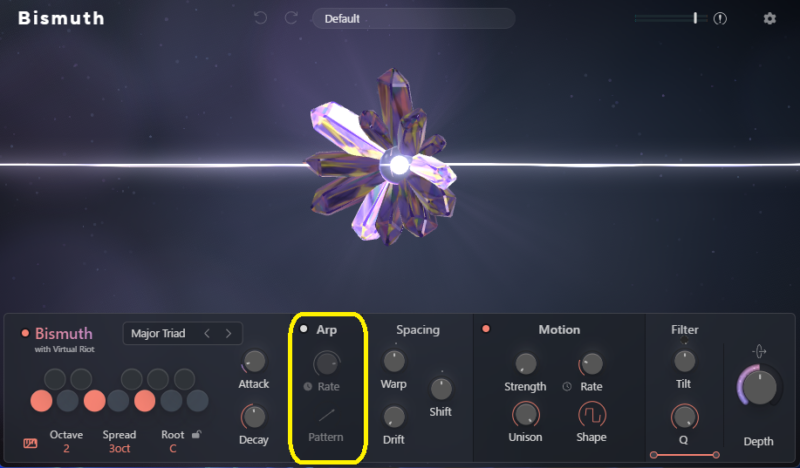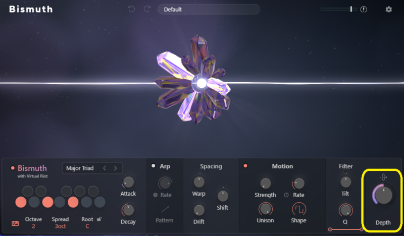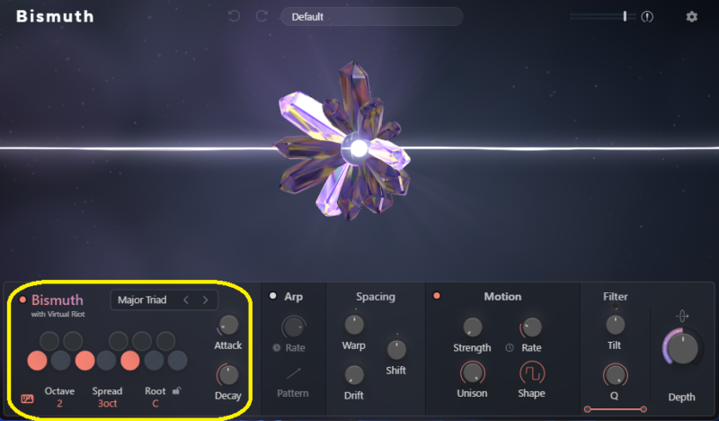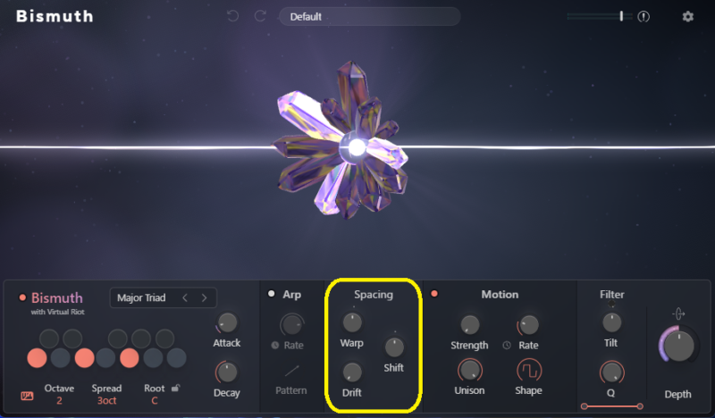 Spreadで、選択した音を複数オクターブで鳴らす。